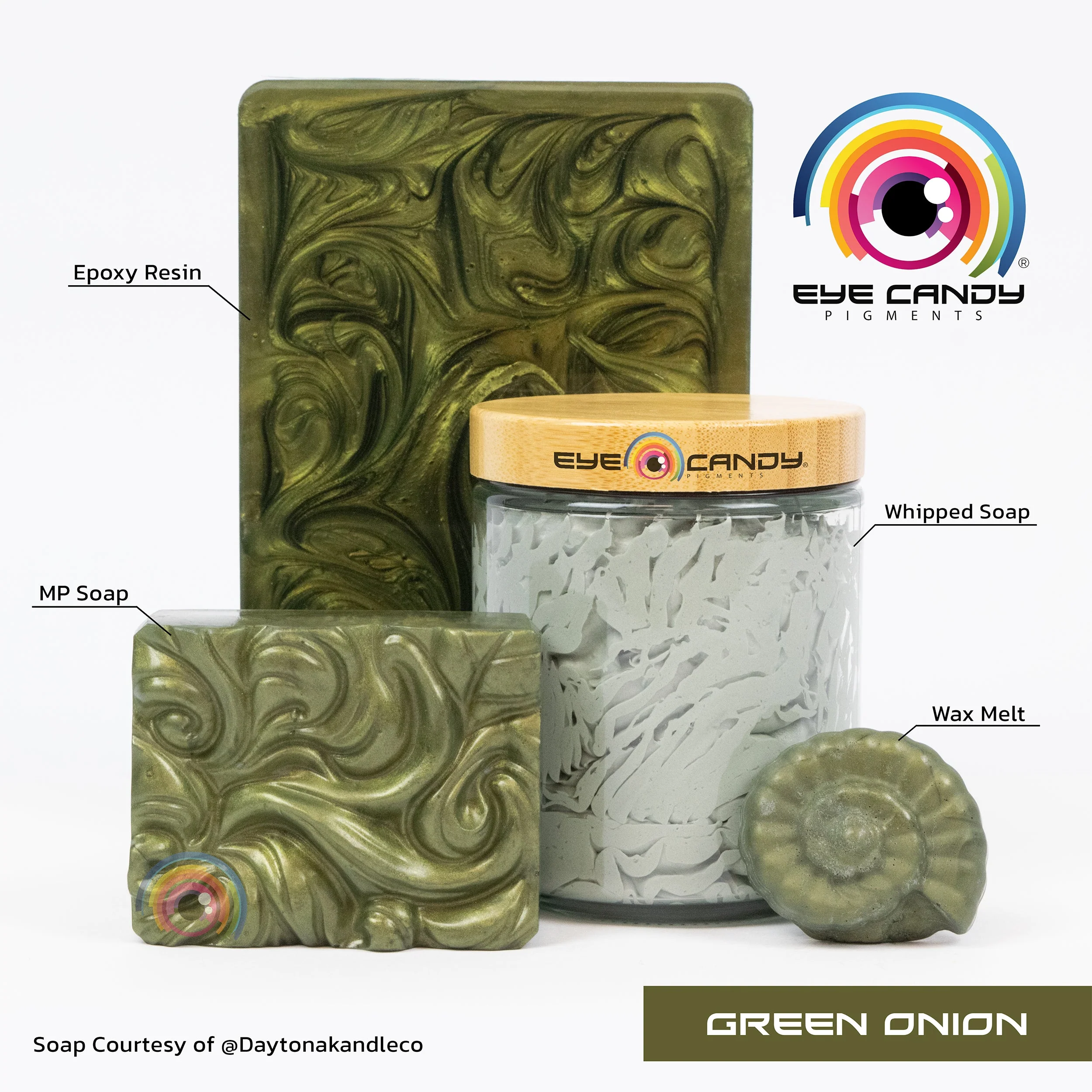 Dive into the captivating allure of Green Onion, a green pigment interlaced with golden hues. Its mesmerizing tint lends a touch of opulence to any project.